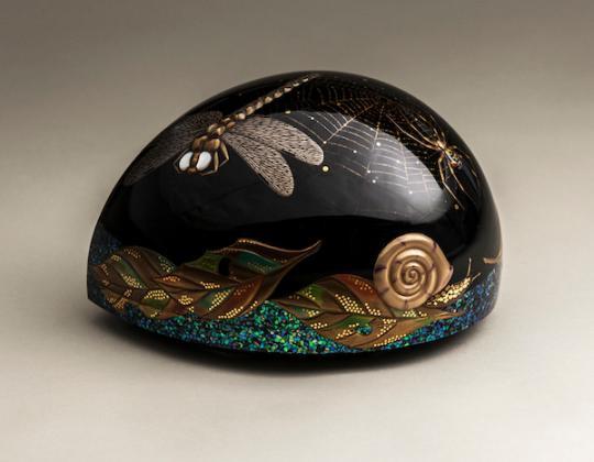冈田紫峰,《小箱:狂风》,干漆, 2018