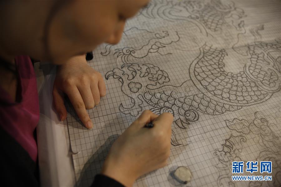 在江苏南京市云锦博物馆,一名织工在设计云锦图案纹样(9月26日摄)。新华社记者朱唯希摄