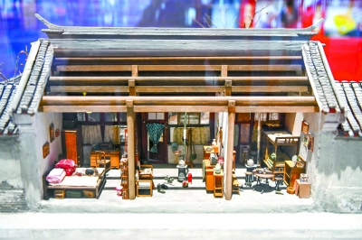 在“伟大的变革——庆祝改革开放40周年大型展览”中,细节逼真的微缩四合院模型展示了北京居住环境的变迁。 本报记者 邓伟摄