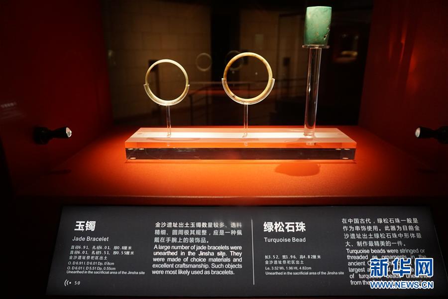 这是金沙遗址博物馆里展出的跨文明特展展品(1月1日摄)。
