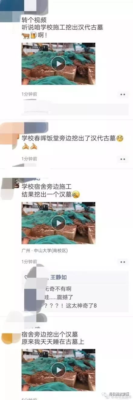 1月6日,中山大学南校园一处基建工地传出消息,在施工现场发掘出数处古墓。中山大学回应食堂工地挖出墓地的情况属实。广州市考古文物研究所表示,目前勘探发现多座东汉和明清时期墓葬,以及唐代水井等遗存。