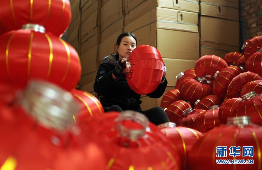 1月9日,河北省任县骆庄乡达二村村民在整理大红灯笼。 春节临近,人们忙着制作节庆用品、手工艺品等,喜迎新春佳节。 新华社发(田晓丽 摄)