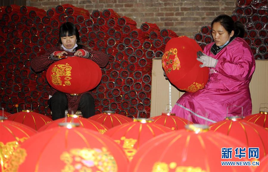 1月9日,河北省任县骆庄乡达二村村民为猪年新春赶制大红灯笼。 春节临近,人们忙着制作节庆用品、手工艺品等,喜迎新春佳节。 新华社发(田晓丽 摄)