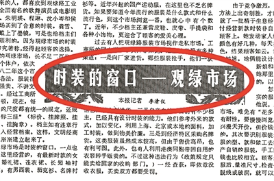 1986年本报关于观绿路时装市场的报道。
