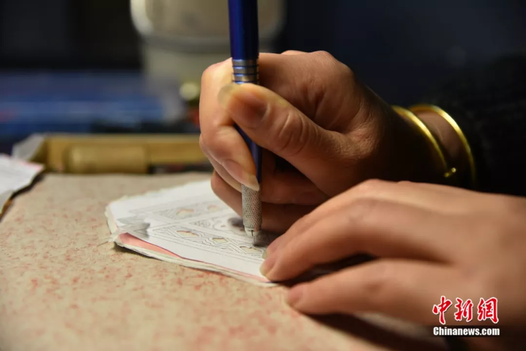 “花上10多天甚至一个月才能制作完成一盏灯。”陈彩平说,最具挑战的是“针刺”环节。“一平方厘米的纸面,要用约0.25毫米的针扎出120-150孔,若一不小心刺坏了针距,就前功尽弃了。”