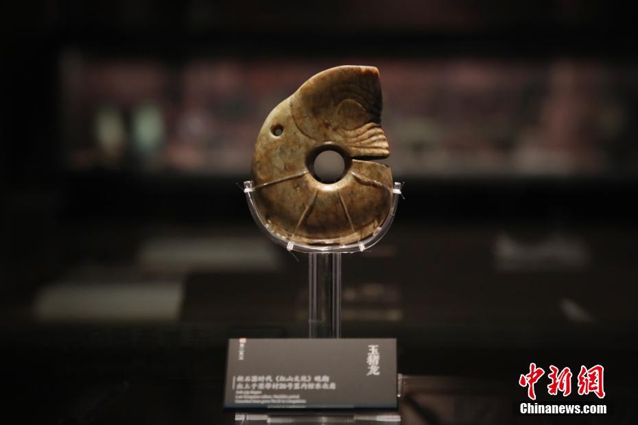 4月3日,“清明祭初祖 文脉传华夏”网络主题采访团走进梁带村芮国遗址博物馆。梁带村芮国遗址博物馆于2018年2月14日正式对外开放。梁带村芮国遗址位于陕西省韩城市西庄镇,为西周、东周时期古芮国遗址,发现于2004年10月。图为芮国遗址博物馆展出文物、5000年前红山文化代表——玉猪龙,系改写中国历史记载的“国家宝藏”。赵昊 摄