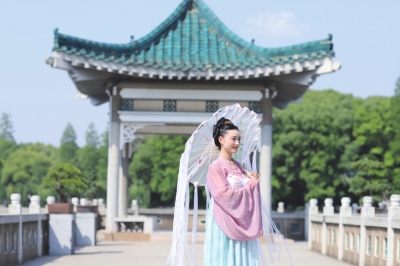 楚风汉韵的建筑风格,让“碧潭观鱼”成为极受欢迎的汉服取景地 东野 摄
