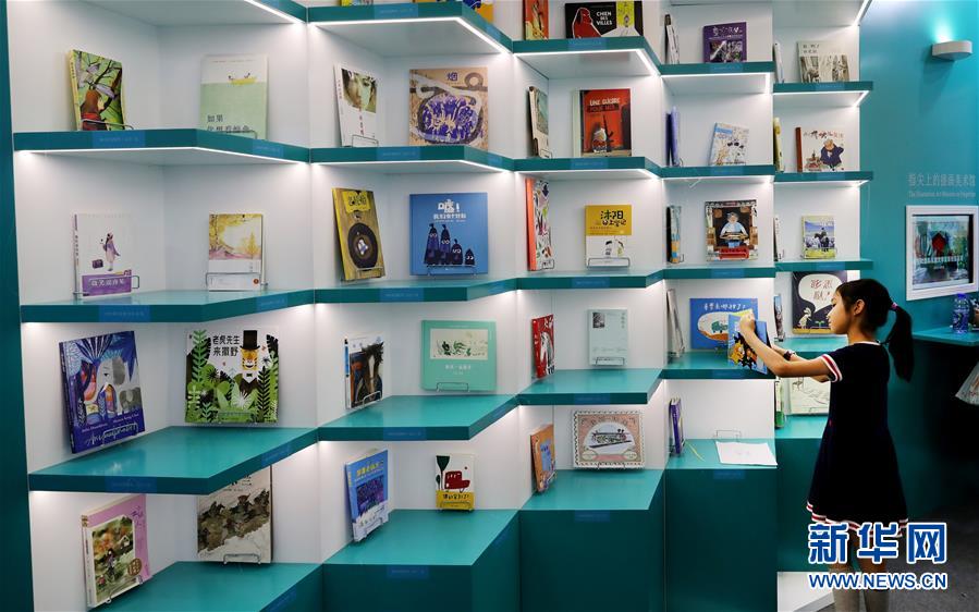 8月15日,小朋友在2019上海书展童书展架旁看书。 8月14日,2019上海书展开幕。全国500多家出版社的16万余种图书参加展销,其中品种繁多的少儿图书展区成为众多小朋友暑假读书休闲的好去处。 新华社记者 方喆 摄