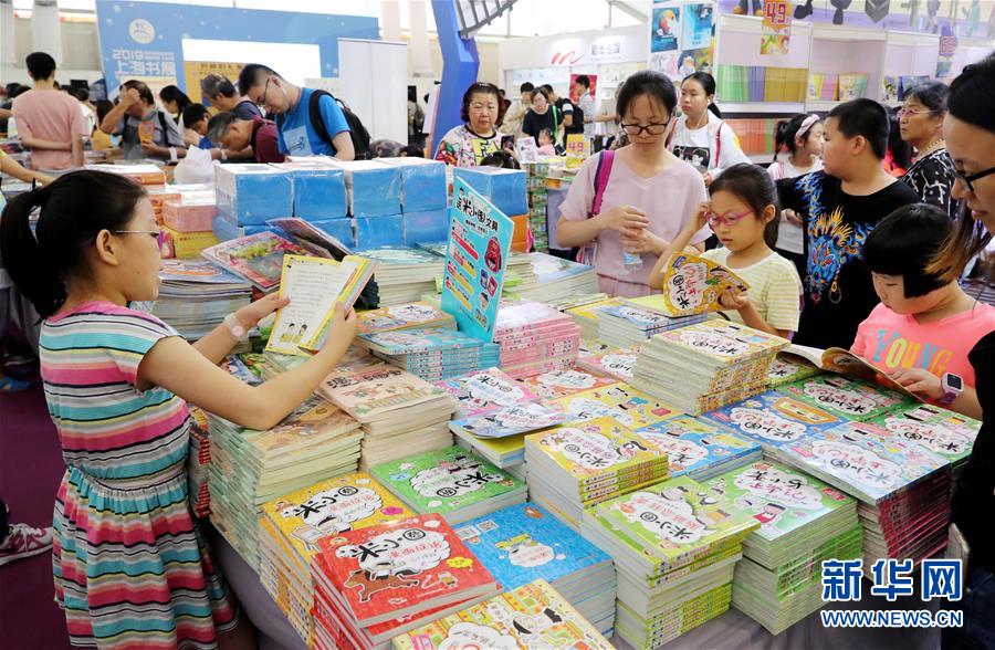 8月15日,在2019上海书展上,小朋友被色彩鲜艳的漫画书吸引。 8月14日,2019上海书展开幕。全国500多家出版社的16万余种图书参加展销,其中品种繁多的少儿图书展区成为众多小朋友暑假读书休闲的好去处。 新华社记者 方喆 摄