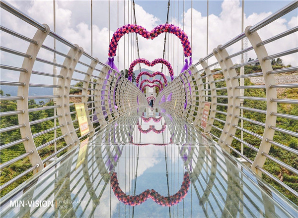 湖南隆回龙瑶幽谷首座“5D玻璃鹊桥”2019年7月正式开放,随之也成为了网红必打卡地之一!游客们也因此纷纷而来,体验走在玻璃栈桥上的那种惊险和刺激感……和心爱的人在桥上一起经历并合影拍照留念!