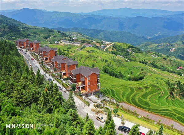 俯瞰梯田中有写“星空云舍”“梯田农场”等字样,这样的高空可视设计也是用了心思的,不仅仅是一种情怀,更是在视觉上给人以归属感!我到了这里,我可以看到什么,我可以做什么,我可以感受到什么……一切的一切都有了!