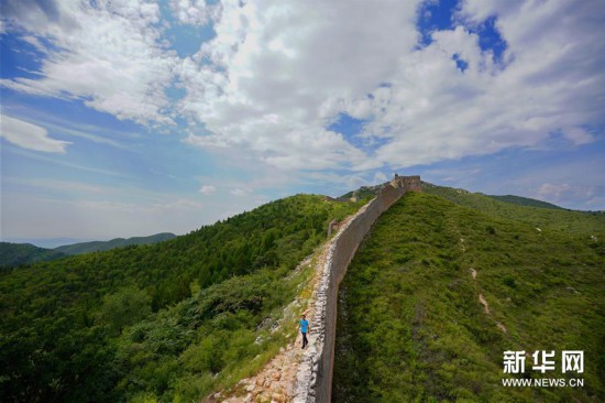 9月4日,李德旺行走在徐流口段长城上。新华社记者 牟宇 摄