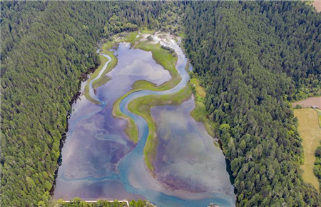 8月31日拍摄的秦皇岛市抚宁区洋河湿地公园景色(无人机照片)。 近年来,河北省秦皇岛市抚宁区在实施生态优先战略过程中,持续推进流经城区的洋河及周边环境的生态治理,使受损生态系统得到有效修复。