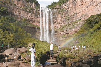 确实,武隆很难不让人心驰神往。它地处武陵山与大娄山结合处,林木茂盛,山水秀美,辖区有汉族、苗族、土家族、仡佬族等13个民族。“武隆区的森林覆盖率达64.5%,空气质量优良天数常年保持在95%以上。还有691处可开发旅游资源串珠式密布全境,是国家推广全域旅游示范区……”向导边走边详细介绍了大自然赋予武隆的“瑰宝”。