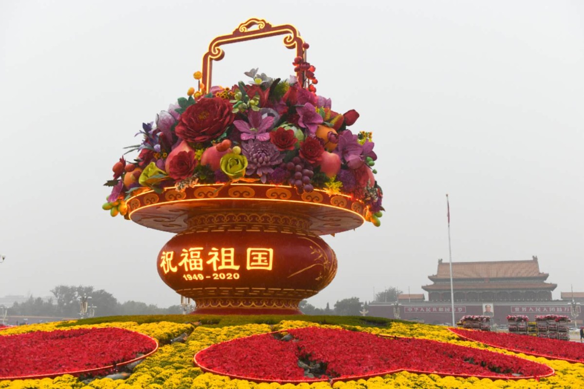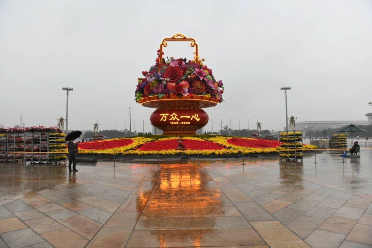 原标题:雨中初亮相!实拍天安门广场“大花篮”