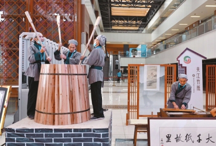 展示历史悠久的夹江竹纸。