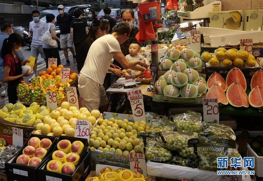 这是9月30日在香港鹅颈街市拍摄的一家水果摊点。 新华社记者 王申 摄