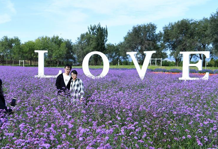 10月2日,游客在首农·紫谷伊甸园中拍照。 当日是国庆假期的第二天,一些市民和游客来到位于北京市丰台区的首农·紫谷伊甸园,享受假日时光。