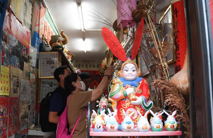 人们在北京市东城区三里河参观游览(6月7日摄)。