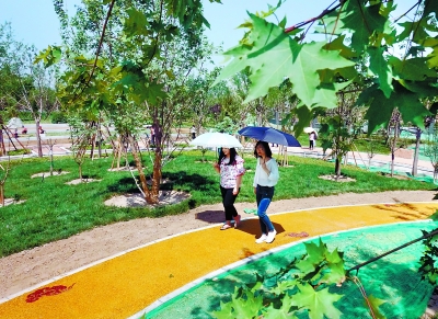 除了花海和蝴蝶花园,环公园1250米的慢跑道将成为中心区最大亮点。冯俊海说,等到铺设完彩色沥青,跑道的表面将会出现八块景观小品,分别是从1992年亦庄建成到如今的变迁历史和大事记,成为展示亦庄形象的窗口。“一边跑一边体会,比如哪个村慢慢没有了,住上楼房了,就像走在历史的河流中。”冯俊海说。
