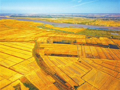 10月金秋,黄河两岸良田万顷,湖泊众多,湿地连片,风景优美。秋日的天空,出奇的洁净,蔚蓝高远,大地辽阔,茫茫田野连接到天际。此时,田野里的水稻已收割完毕,收割机在稻田里留下的一行行的痕迹,与田里剩下的稻茬构成了一幅幅美丽的画作。