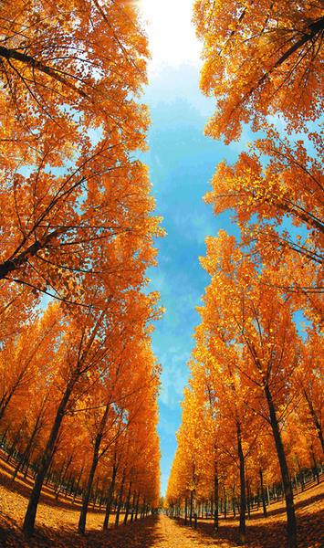 10月25日,合阳县金水运动公园,银杏树叶一片金黄。近年来,合阳县委、县政府树牢“绿水青山就是金山银山”的绿色发展理念,历时两年建成总长度26公里、占地面积2万亩的环城生态防护林带。
