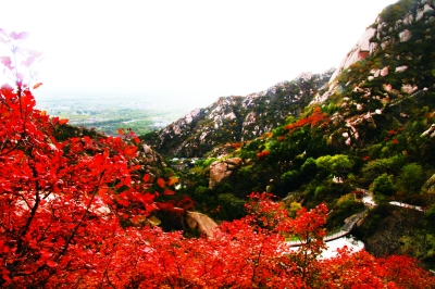 千年上香古道沿途,特别是鹫峰主峰至望京塔段,有大片的元宝枫,名为红叶谷,来到此地仿佛进入了红色的海洋。