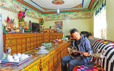 达东村的一户“农家乐”主人在为游客弹奏扎念琴。