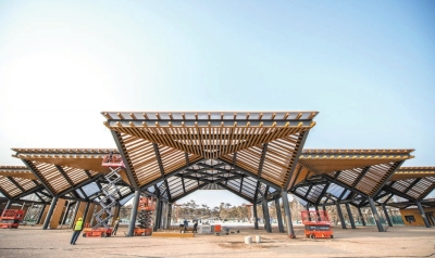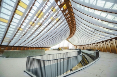 沿着世园会园区“山水园艺轴”一路向北,绿色掩映中您将看到这样一幢建筑:半环形的木质轮廓,像一柄温润的玉如意舒展于青山绿水之间,屋顶两端微微翘起,犹如鸟儿展翅一样轻盈。这就是世园会最重要的标志性建筑——中国馆。在中国馆内的中国生态文化展区,设计者汲取《千里江山图》《富春山居图》里的园艺元素,形成大型山水花鸟长卷展墙,展示美丽中国。