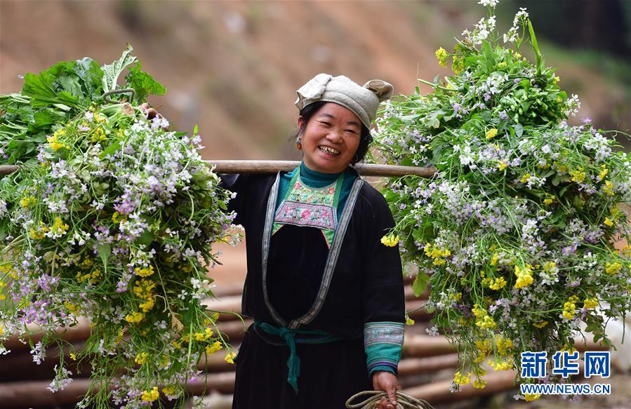 在黔桂乌英苗寨,村民劳作归来(3月26日摄)。新华社记者 黄孝邦 摄