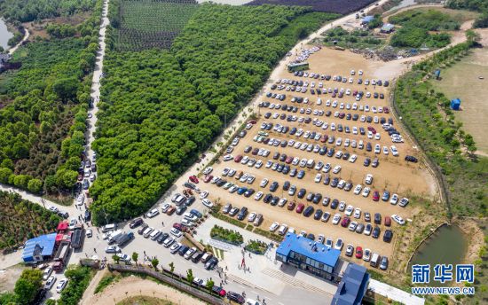 5月2日,安徽省肥东县桥头集镇蓝山湾生态游乐园停车场停满了车辆。