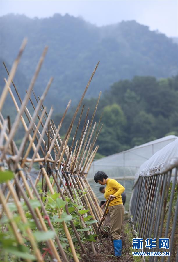 华屋村村民在蔬菜大棚边劳作(5月6日摄)。 新华社记者 兰红光 摄
