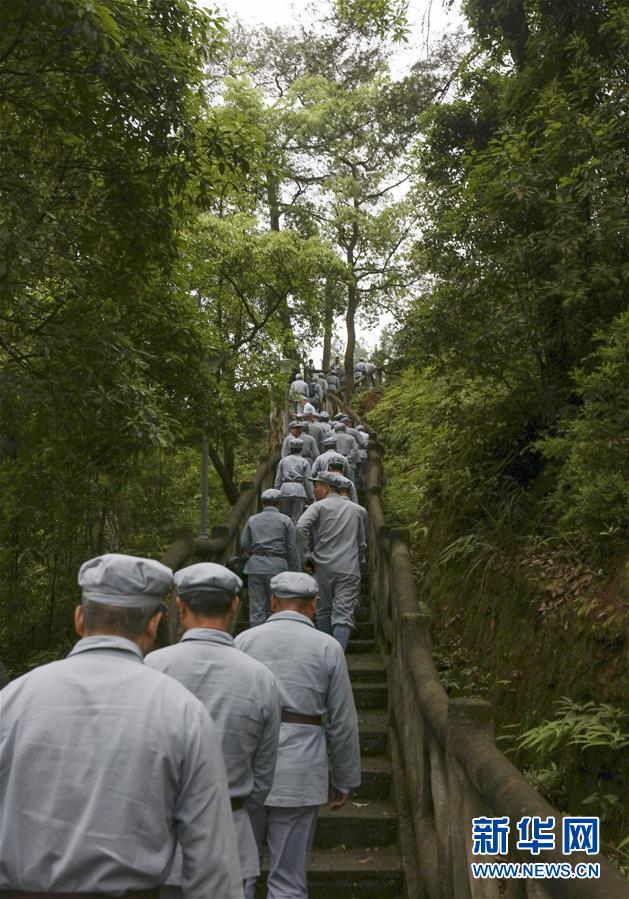 游客在参观华屋村后山的“17棵松” (5月6日摄)。 新华社记者 兰红光 摄