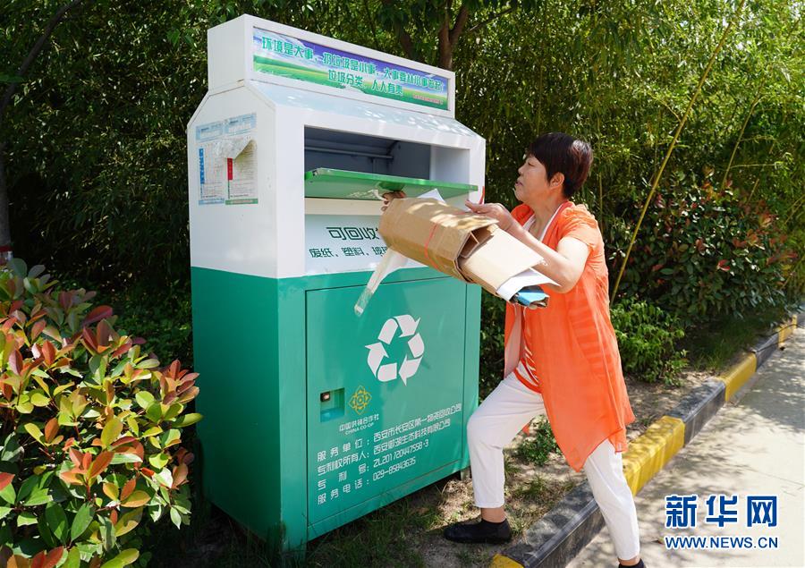 7月4日,西安市长安区子午街道王庄社区居民强小毅在分类投放垃圾。 近年来,西安市长安区持续推动美丽乡村建设,通过完善农村基础配套设施,开展“美丽庭院”“花园乡村”创评活动,推行垃圾分类,使农村人居生活环境得到显著提升。 新华社记者 邵瑞 摄
