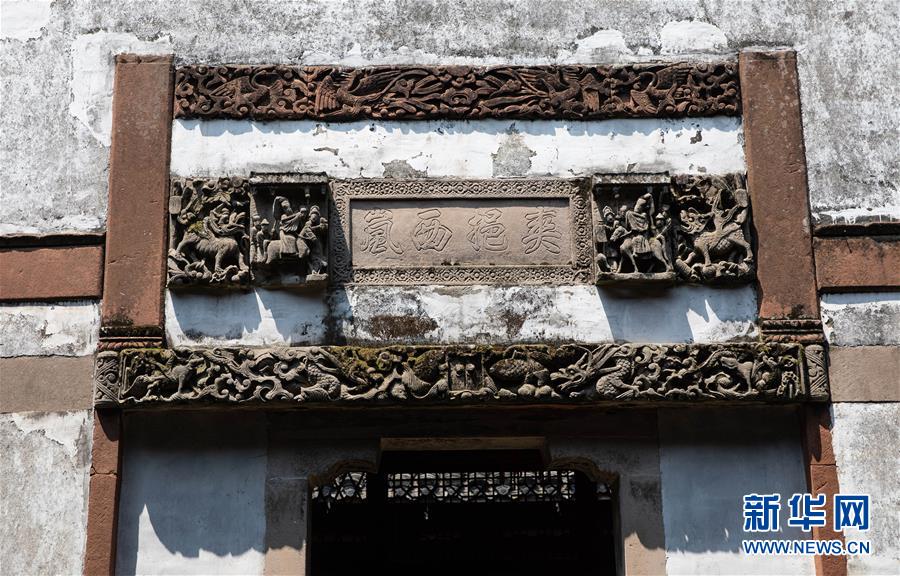 在江西省安义县古村落罗田村拍摄的士大夫第宅院里门楼上的精美砖雕(8月8日摄)。新华社记者 江宏景 摄