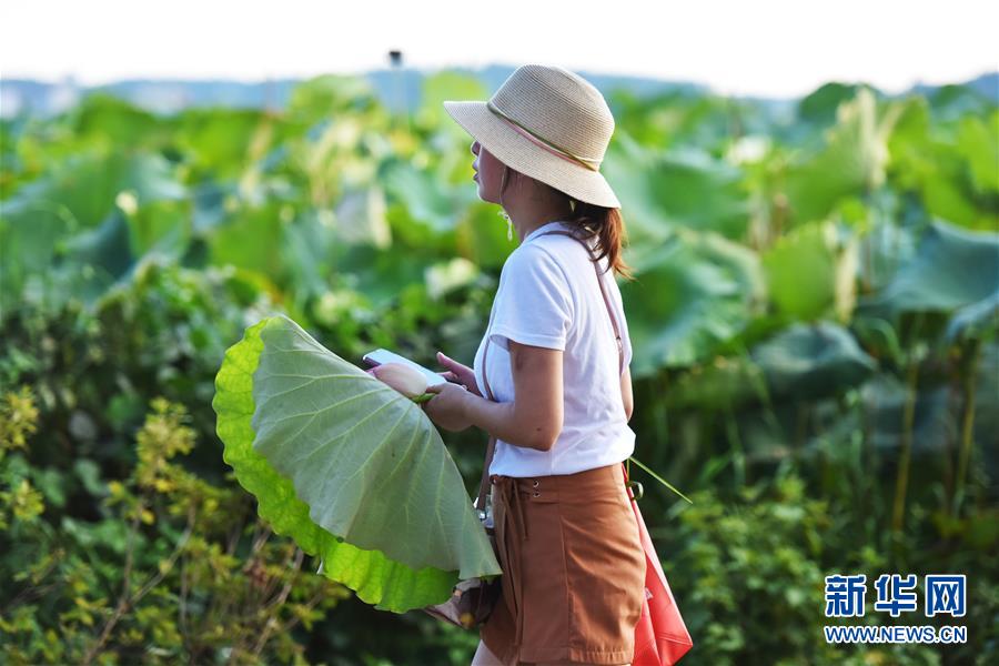 游客在江西南昌安义县水南村的荷花田游览(8月8日摄)。新华社记者 李芒茫 摄