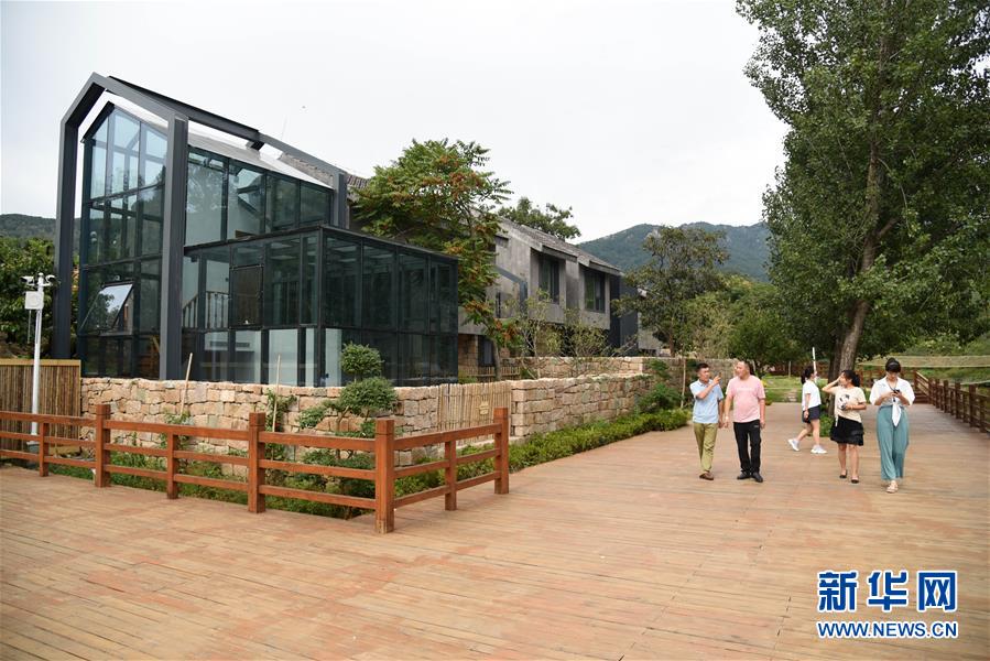 9月3日,游客在日照市五莲县叩官镇董家楼村的北山乡居民宿区参观。新华社记者王凯摄
