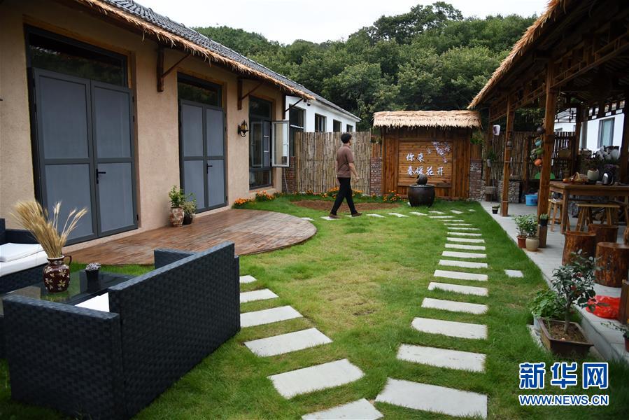 9月3日,一名游客在日照市五莲县松柏镇窦家台子村的民宿参观新华社记者王凯摄