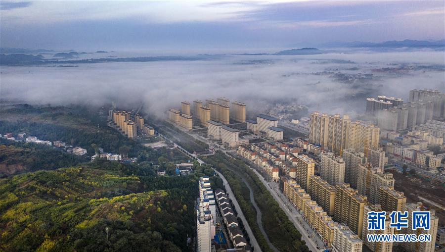 雨后初晴,秦岭深处的陕西洛南县城云霞满天、云雾缭绕,宛若仙境。
