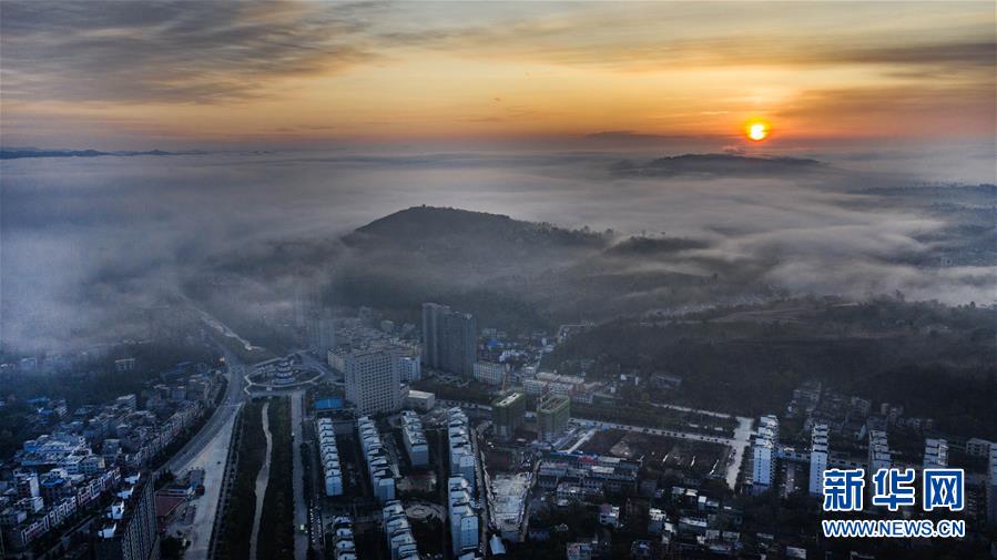 10月17日无人机拍摄的洛南县城。新华社记者 陶明 摄