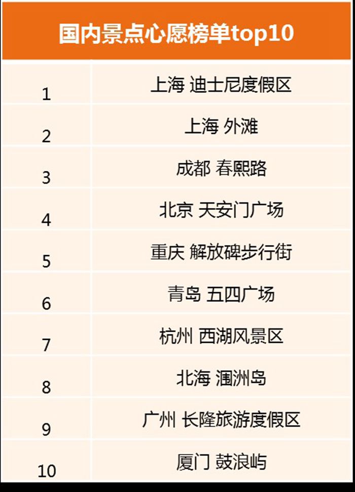 据国家旅游部统计,截至3月11日,全国5A级景区开放数量超过100家,占5A级景区总数近40%。途家平台数据显示,游客最想游玩的景点有上海迪士尼度假区、上海外滩、成都春熙路、北京天安门广场、重庆解放碑步行街、青岛五四广场、杭州西湖风景区、北海涠洲岛、广州长隆旅游度假区、厦门鼓浪屿。