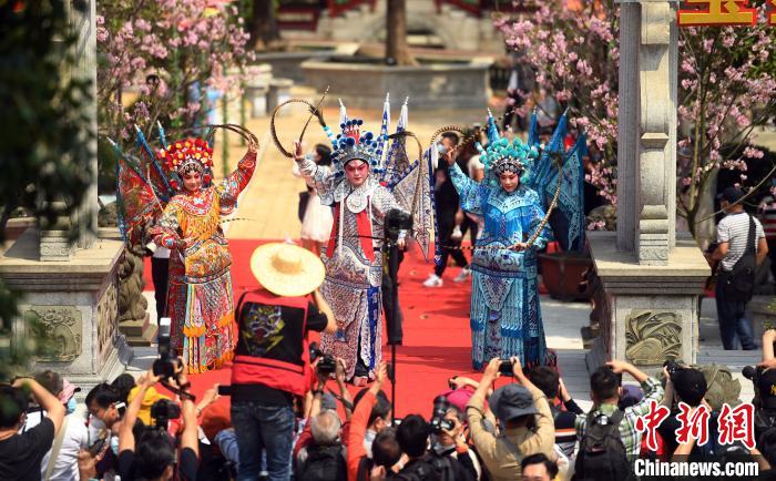 身穿粤剧服饰的演员在表演。吸引了大批摄影爱好者。 姬东 摄