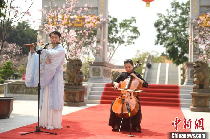樱花树下,大提琴、笛箫合奏广东音乐名作《平湖秋月》悠扬华美、中西合璧。 姬东 摄