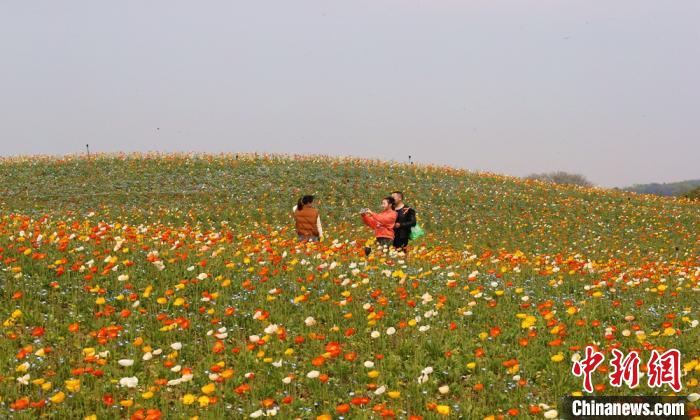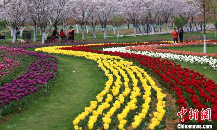 3月25日,在江苏省句容市伏热花海景区内,彩色油菜花、七彩郁金香、樱花、芝樱花、粉蝶花等花卉进入最佳观赏期,五彩缤纷的花朵连成“花海”,吸引了市民和游客前往踏青赏花。