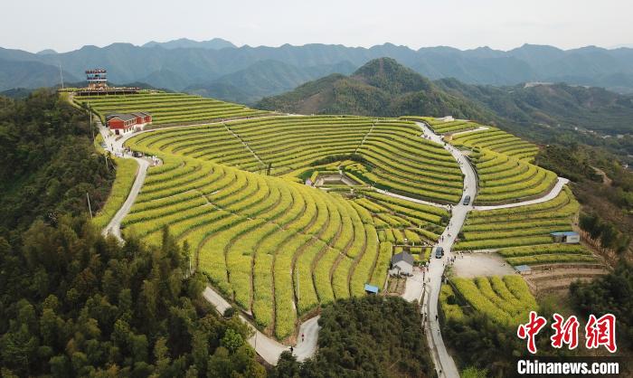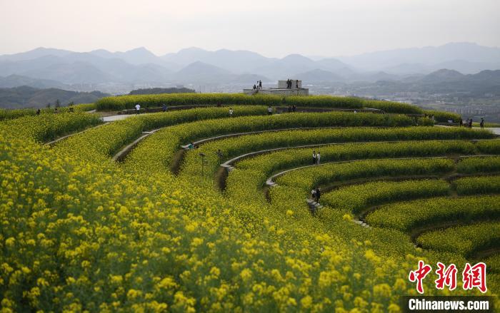 阳春三月,浙江杭州富阳区黑山顶上百亩梯田绽放绚丽油菜花,美不胜收。市民游客在疫情趋于稳定后,纷纷前往赏花,感受浓浓春意。
