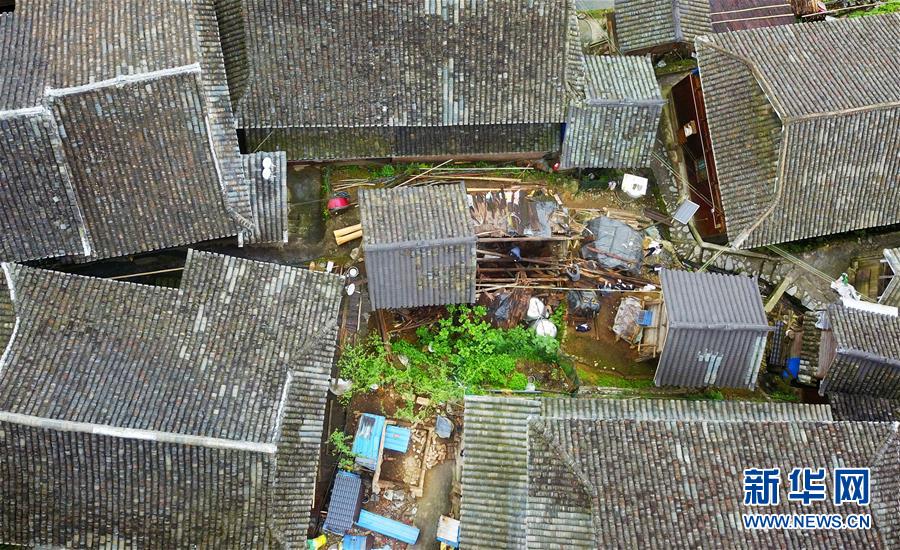 4月19日,贵州省从江县加榜乡加车村脱贫攻坚指挥所的驻村干部帮助农户拆除废弃圈舍(无人机照片)。 贵州省从江县把人居环境整治作为脱贫攻坚工作的一项重要举措来抓,对乡村规划范围内长期无人居住的危房、废弃禾仓、棚圈、柴草房和房前屋后的残垣断壁等进行清理整治,进行复垦复绿,同时开展农户卫生和村寨环境整治,做到乡村环境干净、卫生、整洁,扮靓美丽乡村。 新华社记者 杨文斌 摄