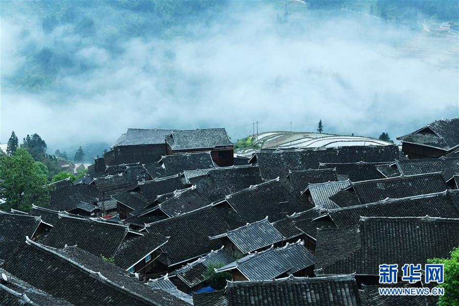 贵州省从江县加榜乡加车村苗寨景观(4月18日摄)。 贵州省从江县把人居环境整治作为脱贫攻坚工作的一项重要举措来抓,对乡村规划范围内长期无人居住的危房、废弃禾仓、棚圈、柴草房和房前屋后的残垣断壁等进行清理整治,进行复垦复绿,同时开展农户卫生和村寨环境整治,做到乡村环境干净、卫生、整洁,扮靓美丽乡村。 新华社记者 杨文斌 摄