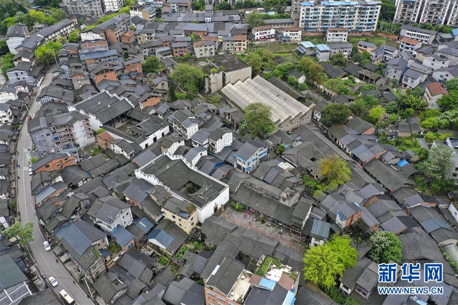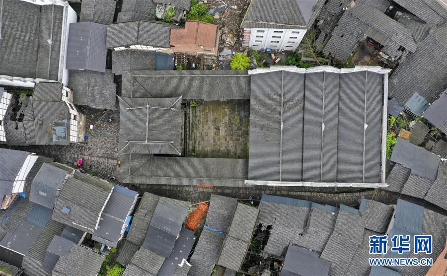 4月20日拍摄的东溪古镇内的万天宫(无人机照片)。 东溪古镇坐落于重庆市綦江区,建镇历史已有千余年。古镇依岩靠水,因地就势而建,独特的地理环境让古镇形成“小桥流水人家”般的风景。 新华社记者 刘潺 摄