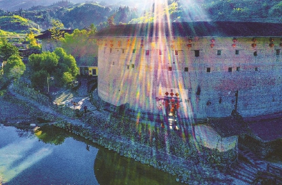 另外,光线是摄影的灵魂,选择好的拍摄时间段至关重要。中国古建筑保护专家组组长罗哲文参观田螺坑土楼群时曾赋诗曰:“田螺坑畔土楼家,雾散云开映彩霞。俯视宛如花一朵,旁看神似布达拉。或云宇外飞来碟,亦说鲁班墨斗花。似此楼形世罕有,环球建苑出奇葩。”从诗中可以看出,“烟雨斜阳时,云雾弥漫间”是拍摄的好时机。