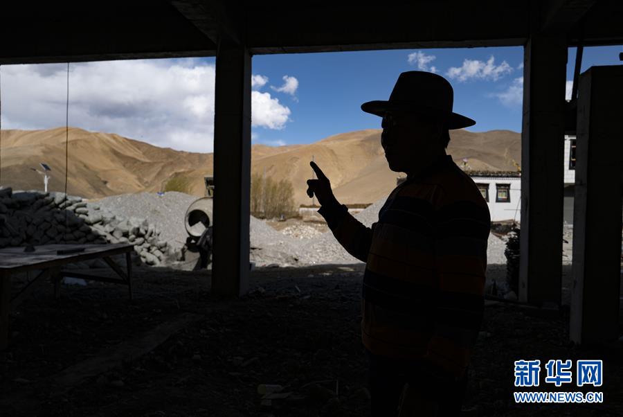 “牛头旅馆”老板多吉在新盖的旅馆监工(5月17日摄)。新华社记者 普布扎西 摄